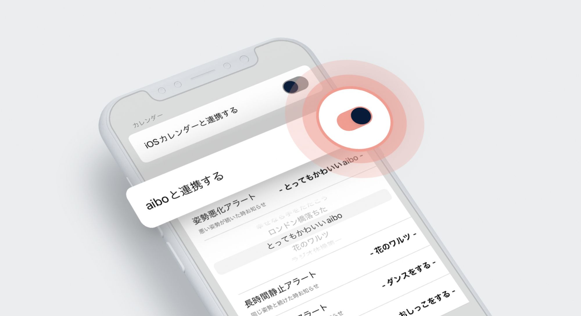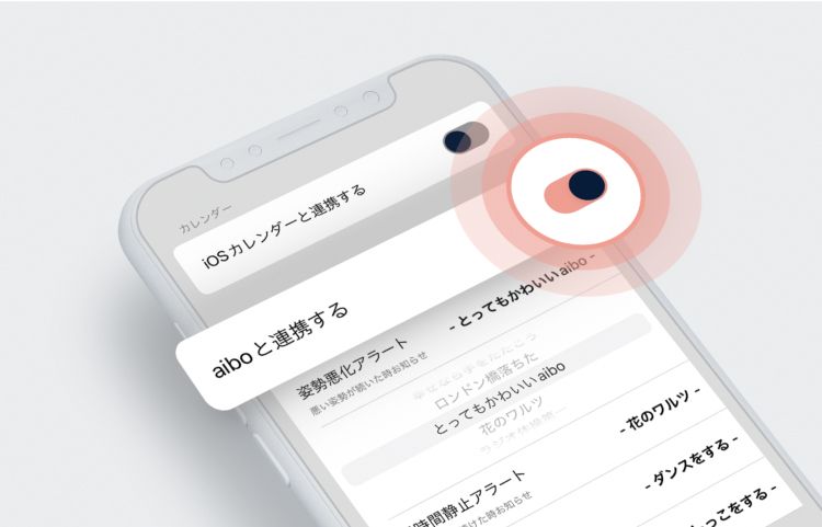 JINS MEMEアプリの設定画⾯で「aibo連携」をONにして、